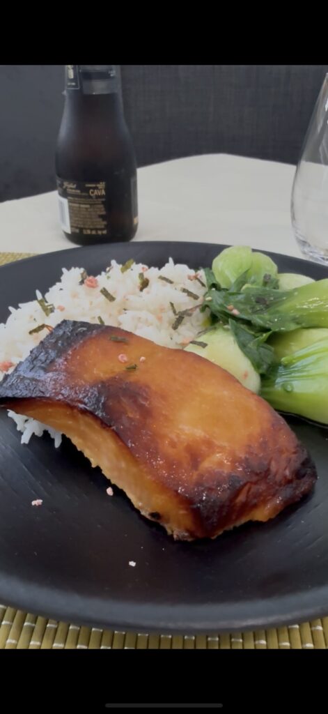 Let it rest for a few minutes before serving. Pair with a crisp white wine or sparkling water with lemon for a perfect balance.